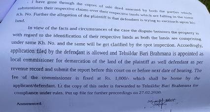 Pertinent to mention here that Court appointed the said Tehsilar as Commissioner for the factual facts of the spot & Tehsildar vide letter dated 09.09.2020 submitted in the court the factual status of the plot, following which vide order dtd. 14.10,2020, the court ordered for not any third party interest.