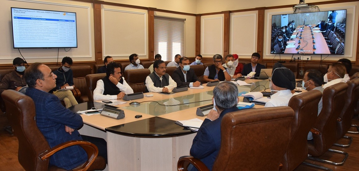 The Principal Secretary was apprised that the Smart Metering project in J&K has taken off well and nearly 15,000 meters are now being installed per month. The Principal Secretary directed that the pace of installation be accelerated so that the target of installation of 2 lakh smart meters by 2022 and 8 lakh meters by 2023 could be met well in time. He also asked the executing agencies to aim at achieving feeder-wise saturation while installing smart meters. He also directed that the DISCOMS should install 100% DT meters also so that energy accounting could be accurately carried out as a first step towards eliminating losses.